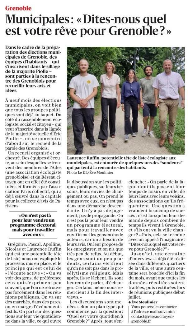 12 juin 2025 – Dauphiné Libéré – Municipales : « Dites-nous quel est votre rêve pour Grenoble ? »